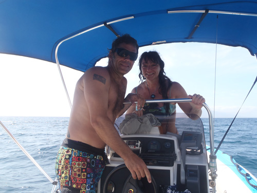![]() The Huntress Mermaid and photographer Benjamin about to drop anchor. |